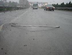 山西平陽高速公路全長124.5公里,是山西省第一條山區(qū)雙向六車道高速公路。中面層6cmAC-20C(摻加5‰ Rad spunrie復(fù)合高聚合物改性劑),瀝青混凝土油石比為4.5%。
