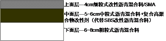 3)III型(經(jīng)濟型)上面層使用復(fù)合高聚合物瀝青混凝土改性劑