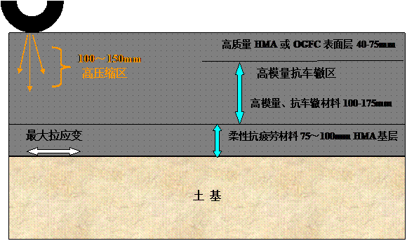 ?????? 4) HMA基層75~100mm高柔性抗疲勞瀝青混凝土起到消除疲勞破壞的作用,應(yīng)具備高柔性、抗疲勞、水穩(wěn)定性好的特點。