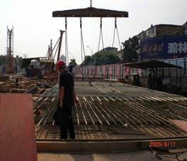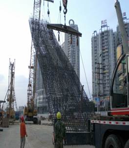 ???????(5)筋籠吊裝的過程中,起吊點(diǎn)均需要放置在鋼筋之上,嚴(yán)禁將起吊點(diǎn)放置在玻璃纖維筋上。